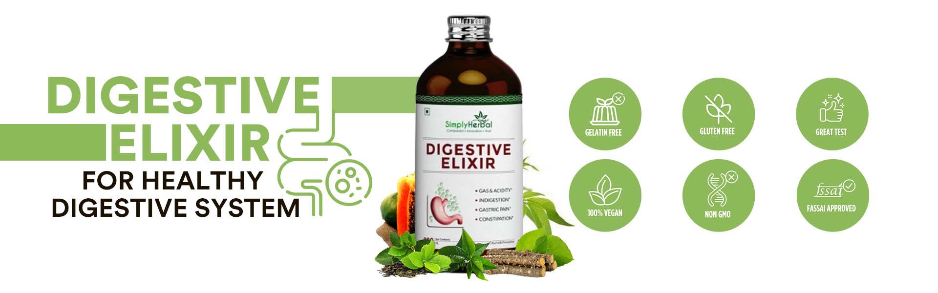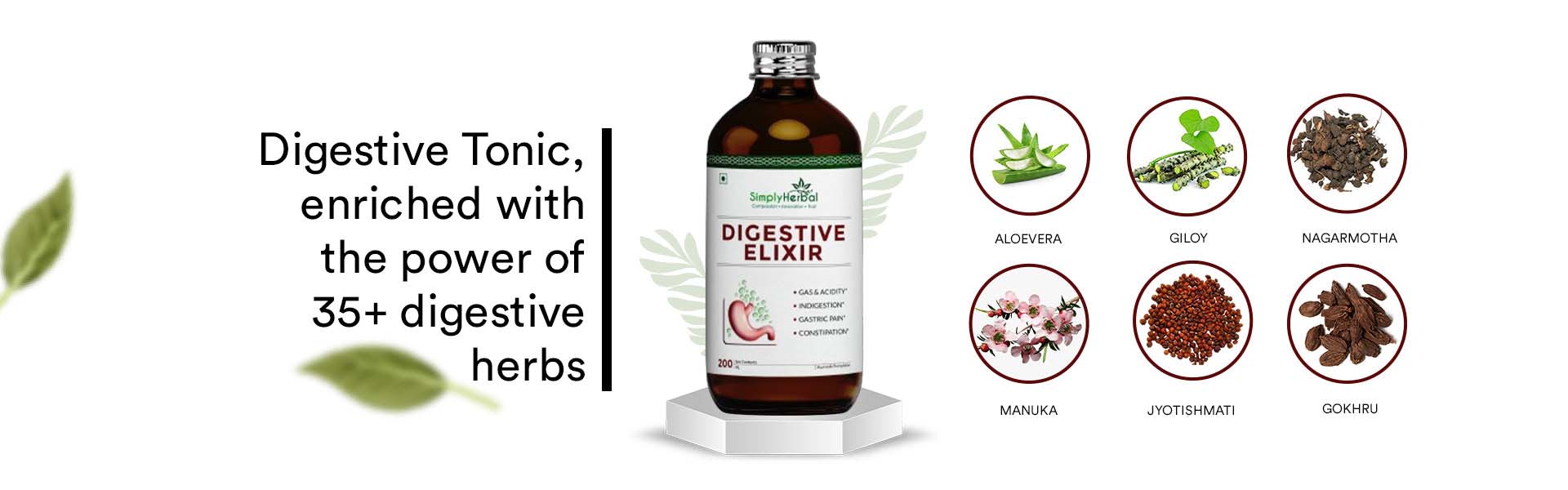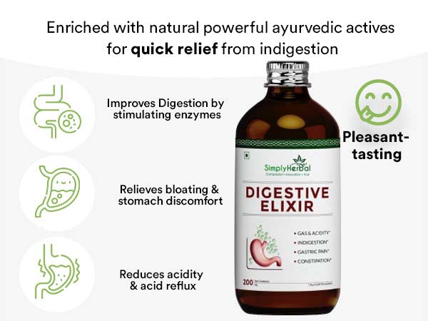 Simply Herbal Ayurvedic Digestive Elixir Syrup Tonic Enriched With 37 Digestion Enzymes Supplement for Gas & Acidity, Constipation, Bloating, and Improve Immune System