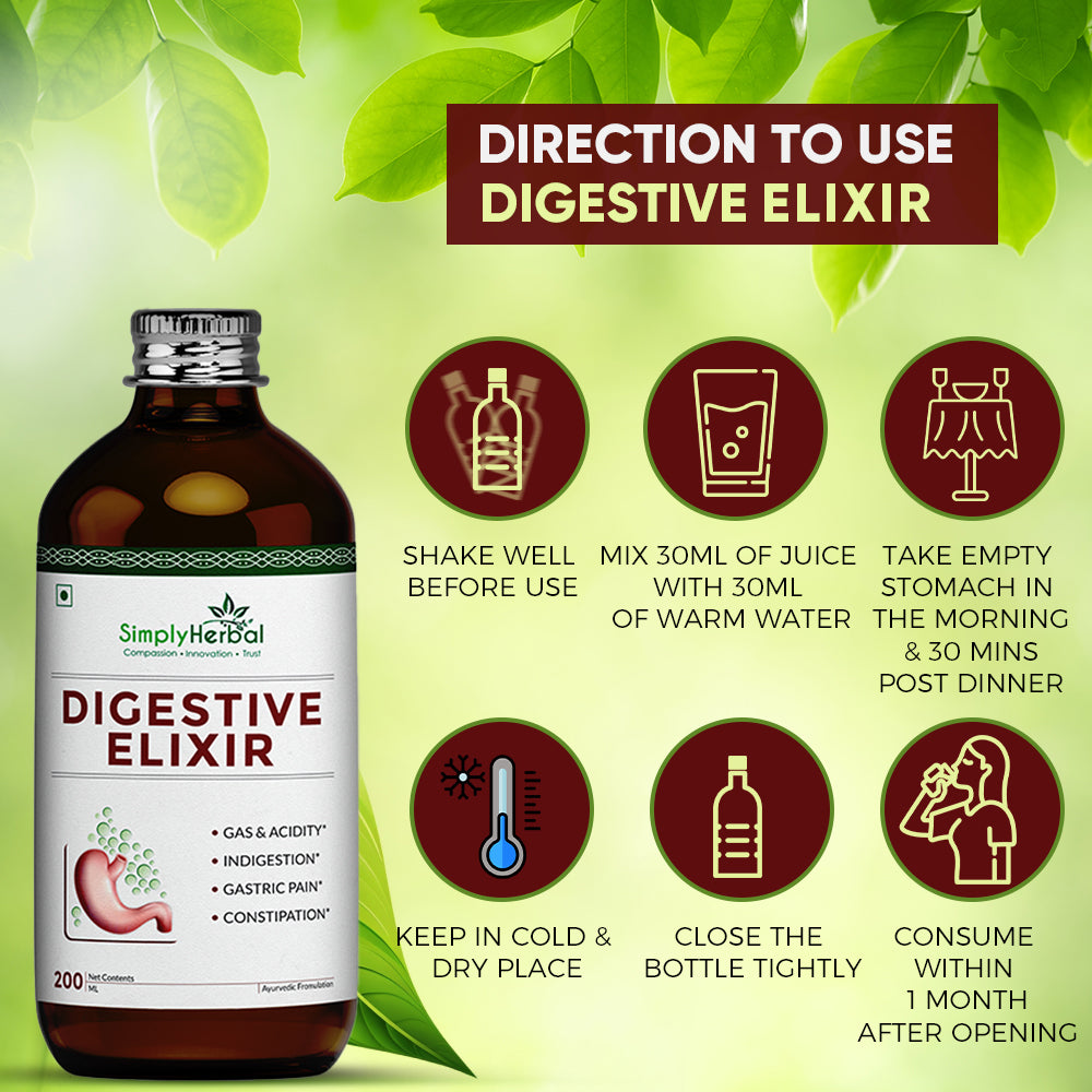 This Elixir Acts on the Entire Digestive System, Promoting Digestive Immunity and Reducing the Recurrence of Common Digestive Problems. And, It May Treat Indigestion, Gas, Flatulence, Acidity, Bloating, and Stomach Heaviness.