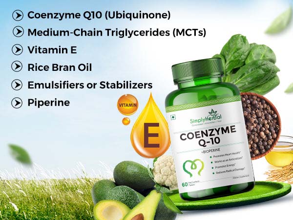 Simply Herbal CoQ10 Natural Coenzyme Q10 Tablets 200mg with Bioperine Antioxidant Supplements, Provide Superior Absorption, Supplement for Heart Health and Energy Metabolism - 60 Tablets