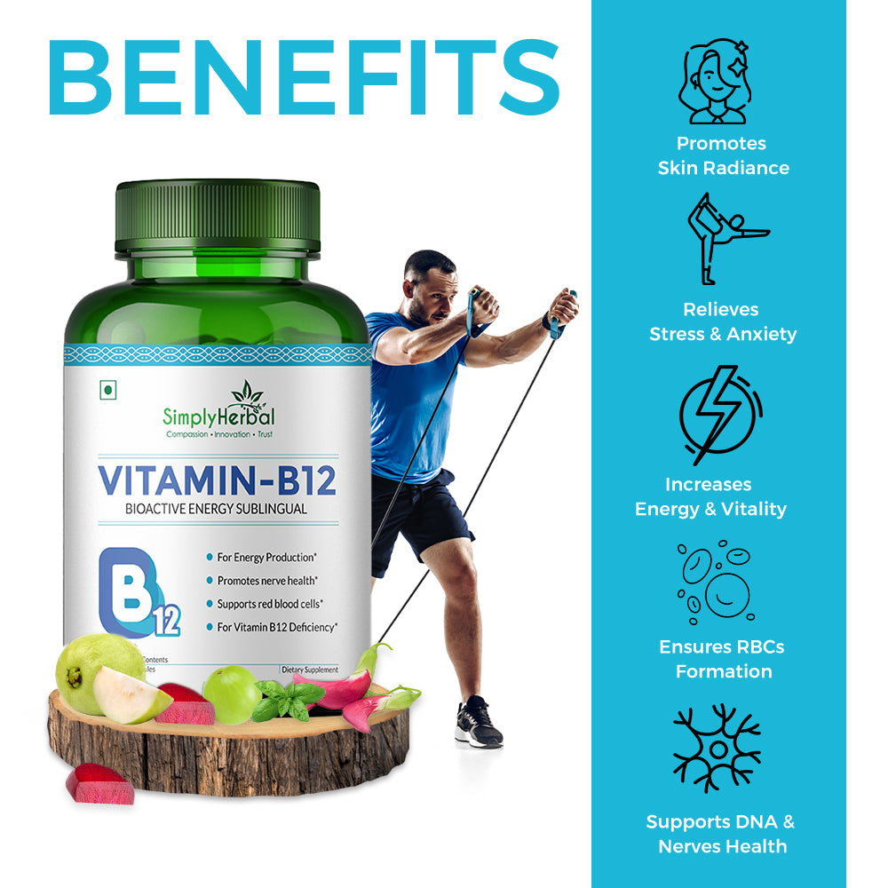 Promote Nervous System Health and Support Energy Metabolism; Simply Herbal Methylcobalamin Promotes Rbc Formation and Development. Vitamin B12 is Essential for Humans at Every Stage of Life, From Conception Through Advanced Age. Vitamin B12 is Essential for Neurological Health, Mood and Energy, Produce Red Blood Cells, Maintain Good Health, and Heart Health.